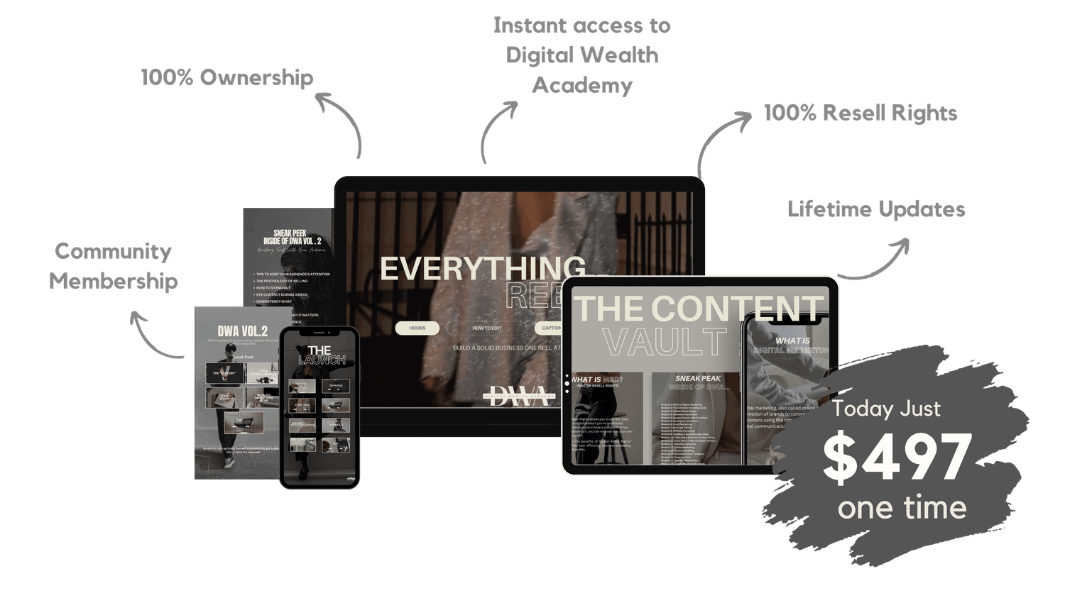 Complete ownership of the Digital Wealth Academy - An already Done-For-You (DFY) Course in high demand & ready to be sold for 100% profit! (Value $997)