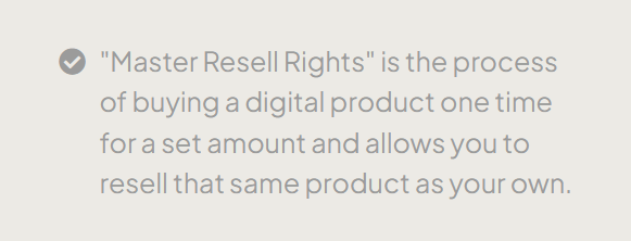 Master Resell Rights means that when you buy this course, you also buy the right to re-sell it for 100% profit!
